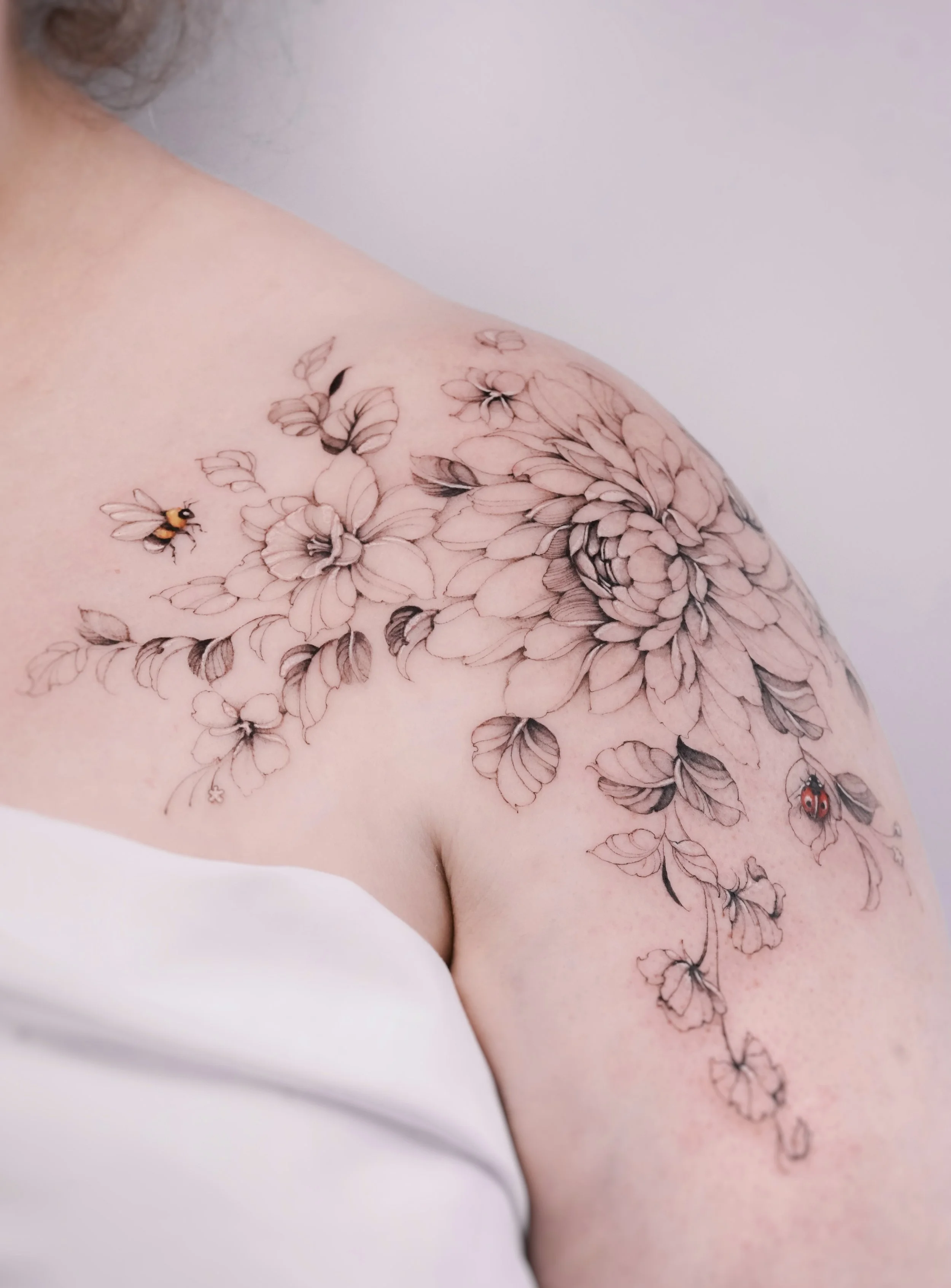 I don’t do copies. Every tattoo I design is unique, made in my style for each client, and will only be tattooed once. Your piece will always be original and tailored to you, but we can definitely use your favourite references as inspiration for your project.